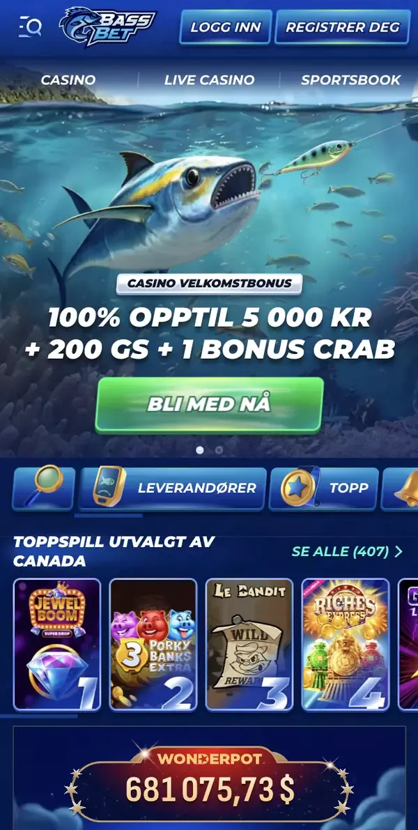 For Ä holde variasjonen hÞy, samarbeider vi med leverandÞrer som Pragmatic Play, Evolution, Microgaming, Play'n GO, Relax Gaming, Hacksaw Gaming, Elk Studios, Push Gaming, Red Tiger og Betsoft. NÄr du logger inn hos Bassbet, er hele biblioteket tilgjengelig, ikke bare et lite «mobil»-utvalg. Hvis du foretrekker ulike spillestiler, kan du bruke leverandÞrfiltre for Ä komme til favorittstudioene dine pÄ sekunder.